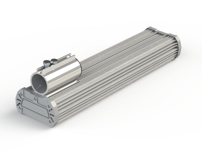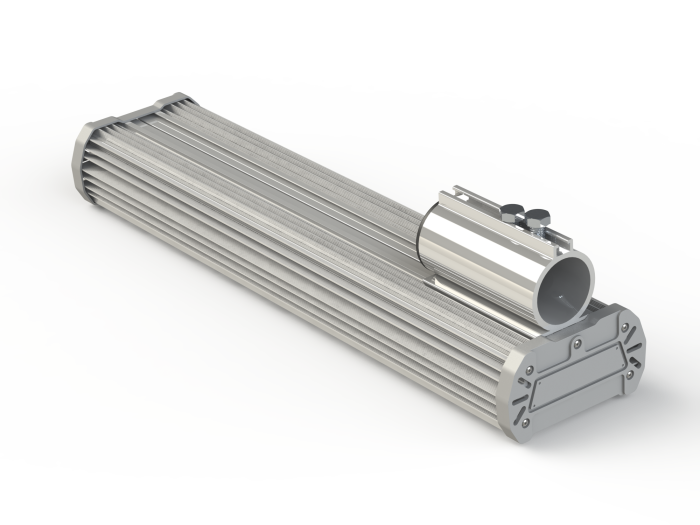 Усиленный корпус светильника выполнен из анодированного алюминия, торцы светильника закрыты герметичными крышками с уплотнением. По умолчанию комплектуется консольным кронштейном. Наличие клапана выравнивания давления. Опционально комплектуется защитой от 380В, грозозащитой, защитой от импульсных скачков напряжения до 10кВ.Степень защиты в базовой комплектации – IP66.