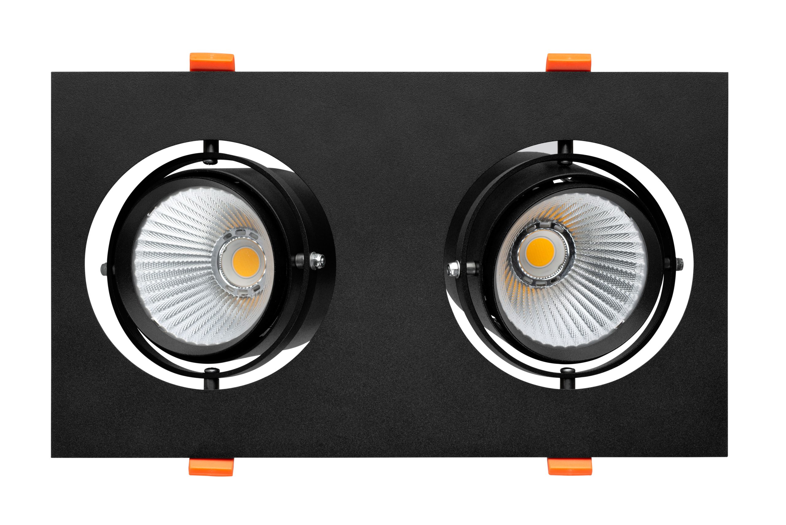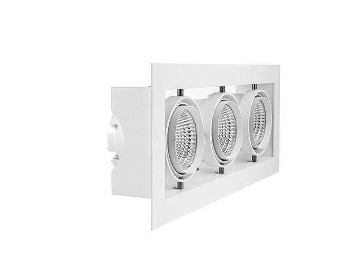 Серия люксовых встраиваемых карданных светильников. Несколько мощных поворотных источников света в едином корпусе. Служат для общего и акцентного освещения административных и торговых помещений. Возможно изготовление светильника с любыми параметрами и шагом мощности 2 Вт.