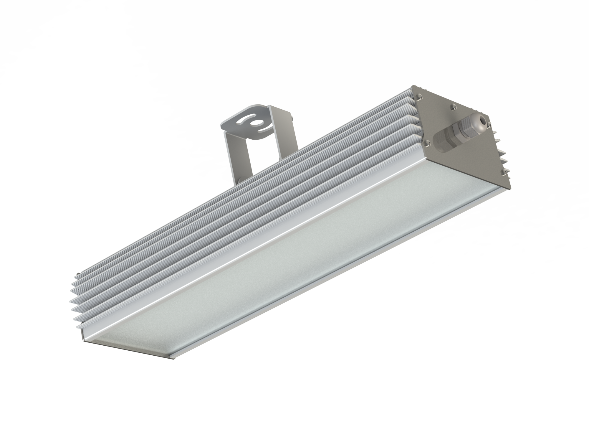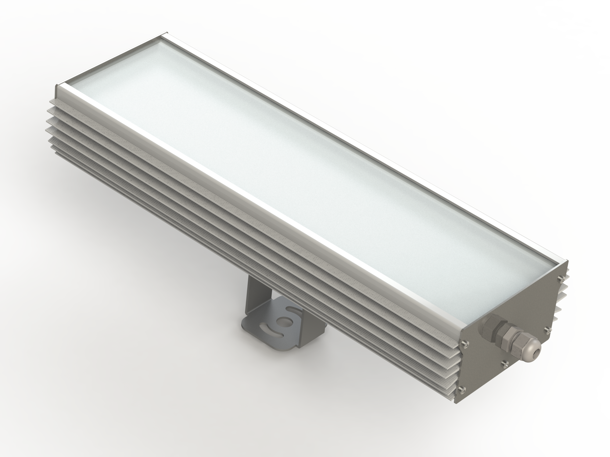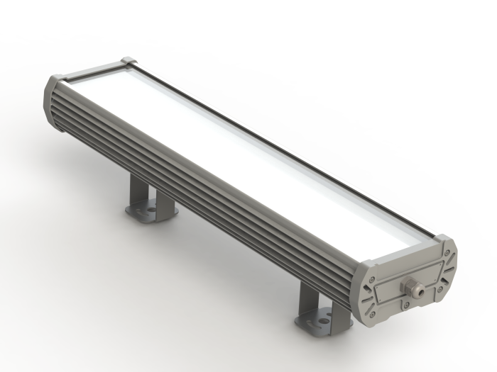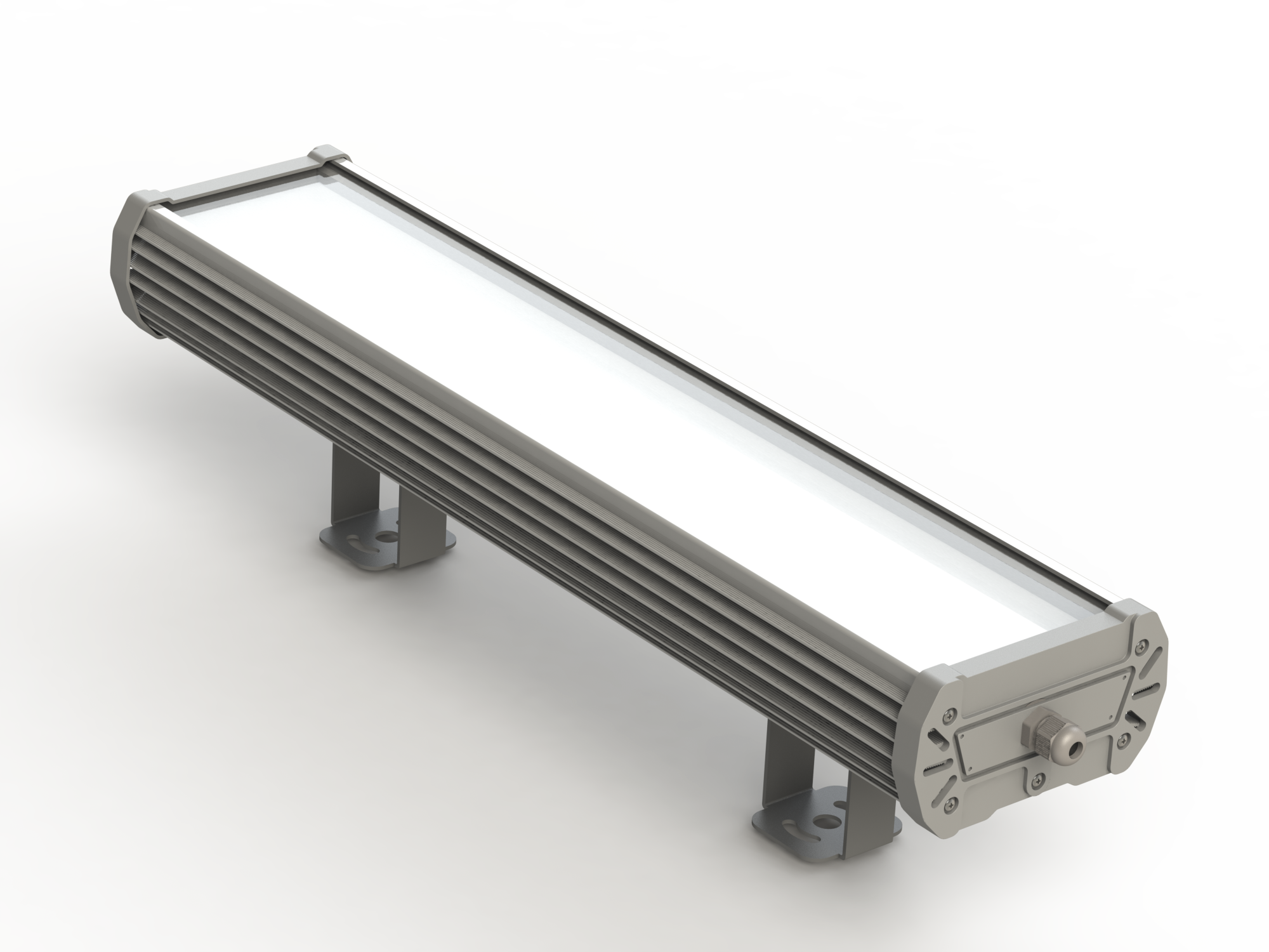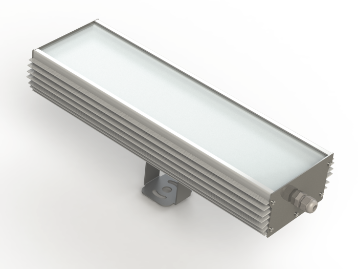 Усиленный корпус светильника выполнен из анодированного алюминия, торцы светильника закрыты герметичными крышками с уплотнением. Степень защиты в базовой комплектации – IP65. Возможно пожаробезопасное исполнение (FS).