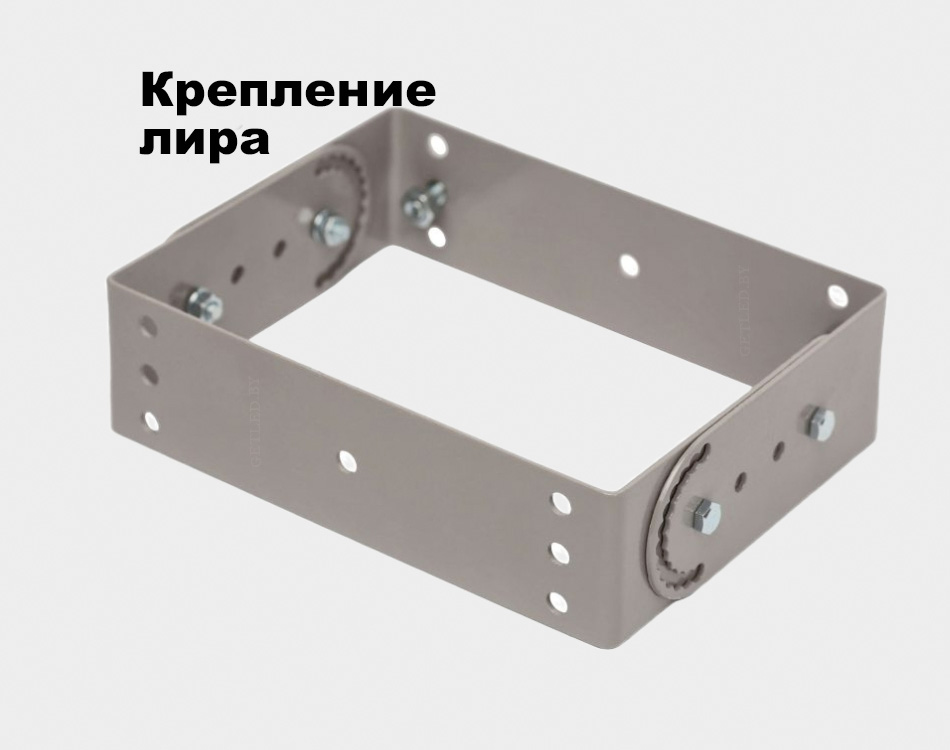 Крепление светильника непосредственно на поверхность потолка либо стен при помощи поворотных кронштейнов (количество зависит от модели) с углом поворота 180°. Опционально предусмотрены подвесное крепление, а также крепление на трос. Возможно изготовление крепления под индивидуальные требования.