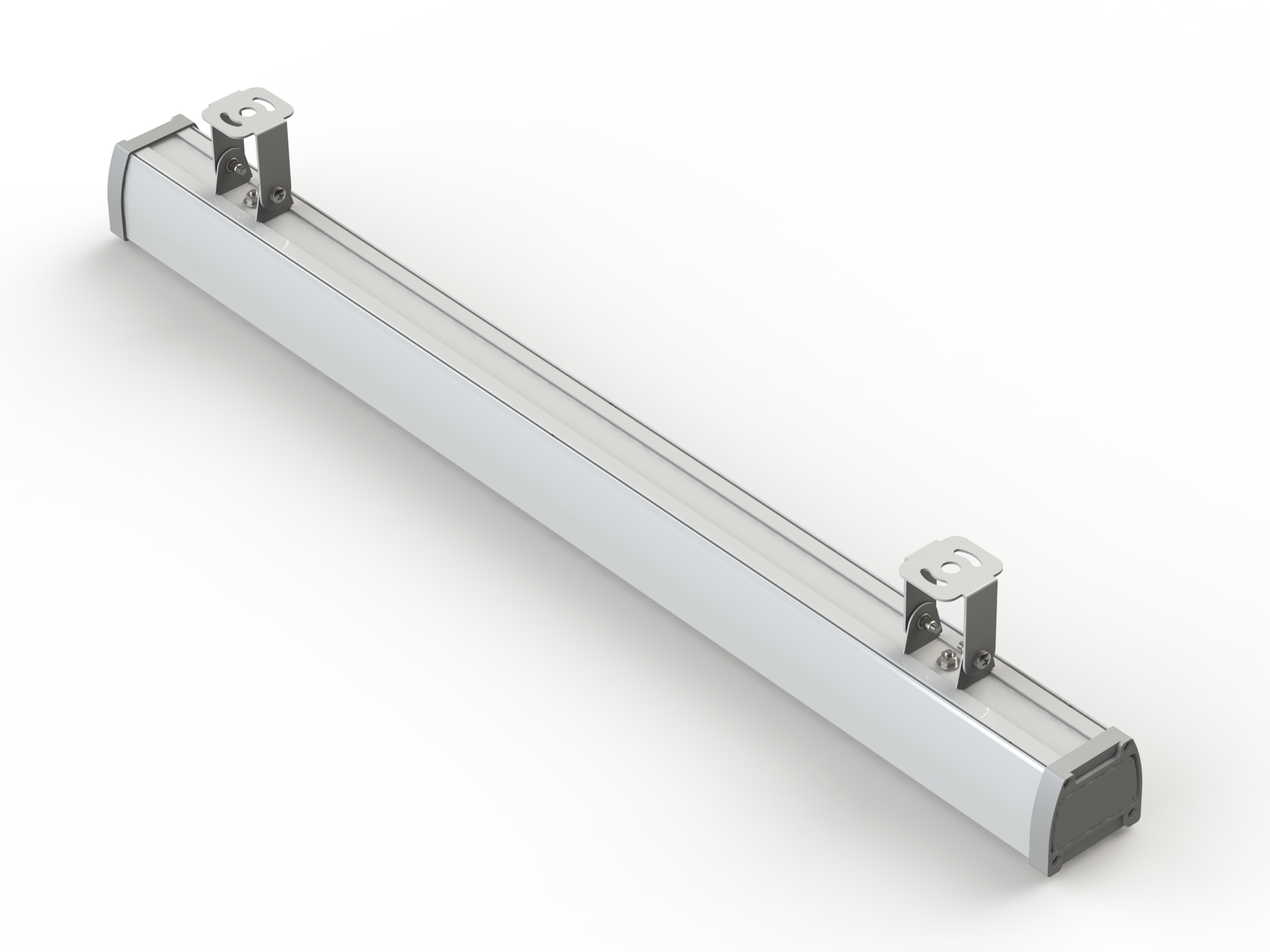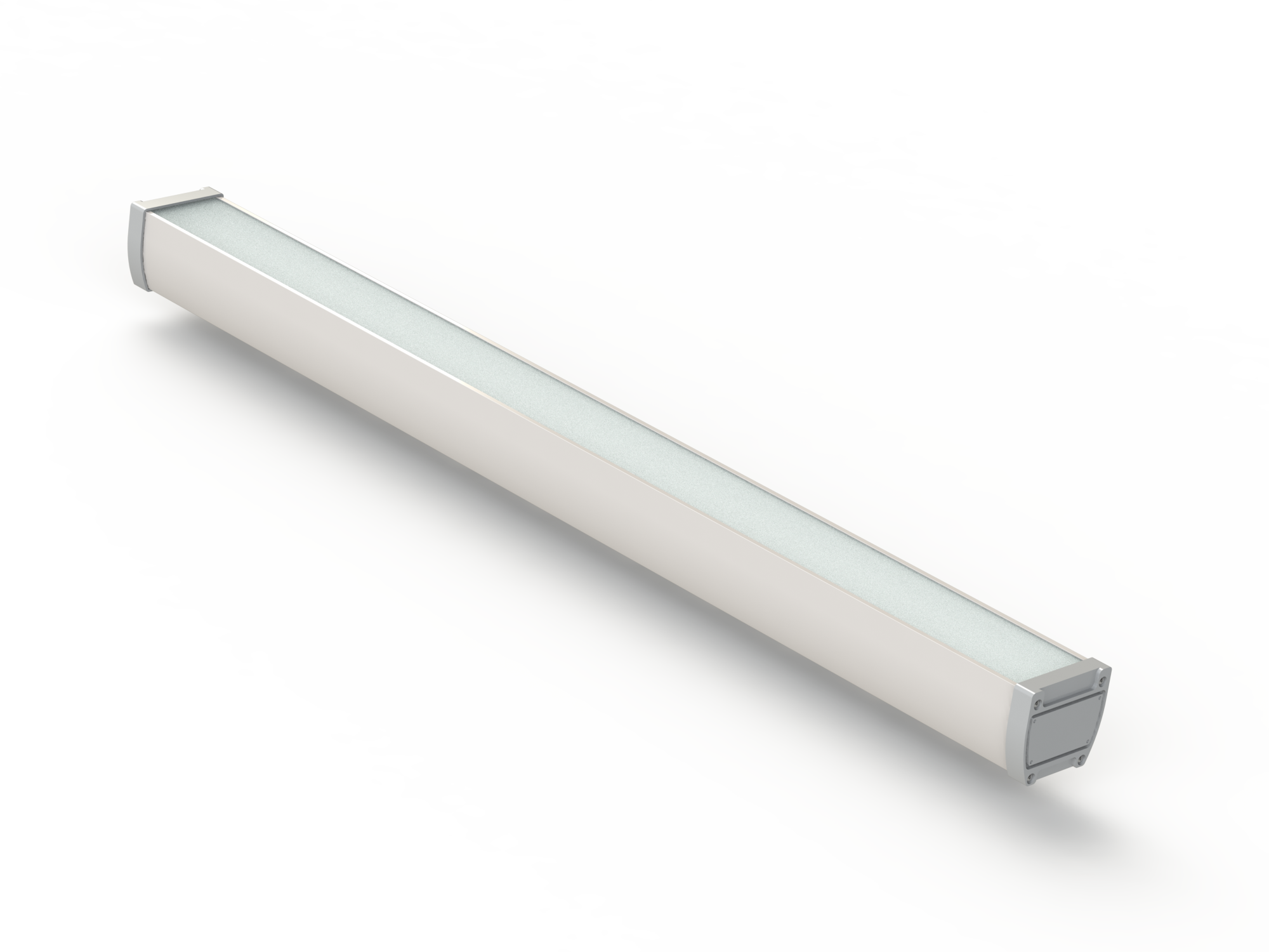 Корпус светильника выполнен из анодированного алюминия, торцы светильника закрыты герметичными крышками с уплотнением. Степень защиты в базовой комплектации – IP54.